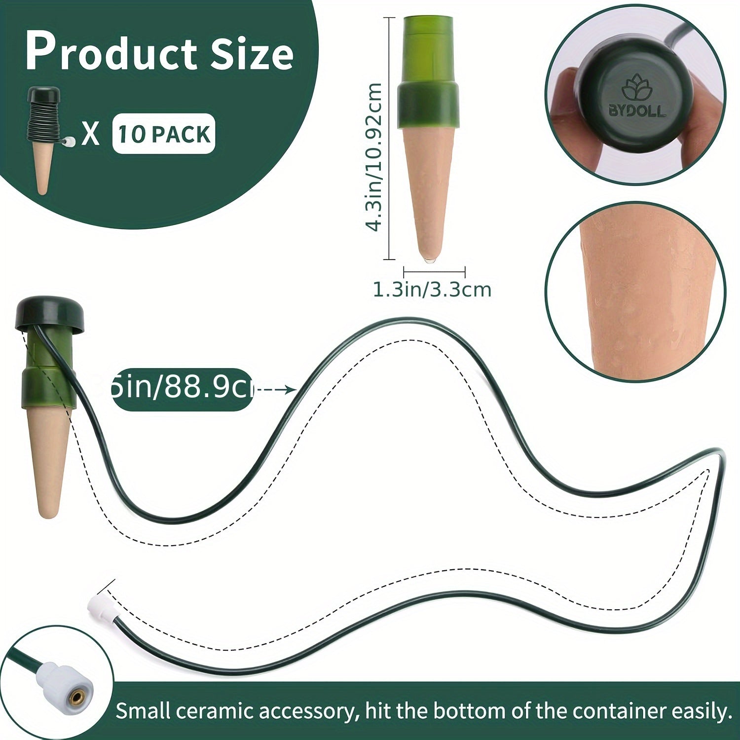 10pcs Automatic Plant Watering Stakes with Terracotta Spikes - Adjustable Drip Irrigation System for Indoor & Outdoor Plants, Houseplants, and Bonsai - Perfect for Vacation Care, Black Plastic Design, Self Watering Device for Plants